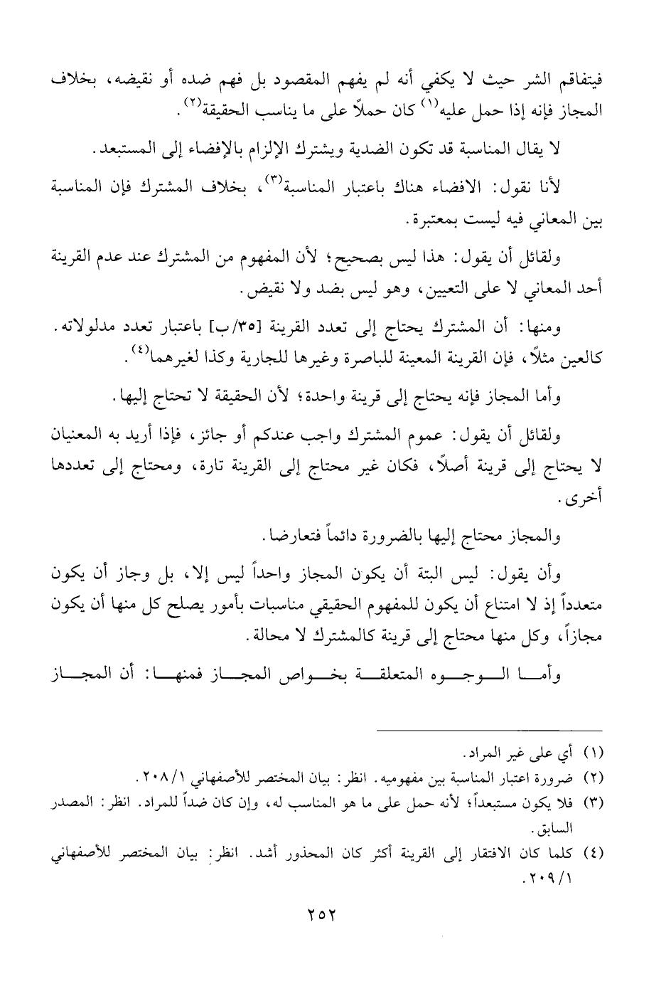ومنها: أن المشترك يحتاج إلى تعدد القرينة [٣٥/ب] باعتبار تعدد مدلولاته. كالعين مثلاً، فإن القرينة المعينة للباصرة وغيرها للجارية وكذا لغيرهما.
