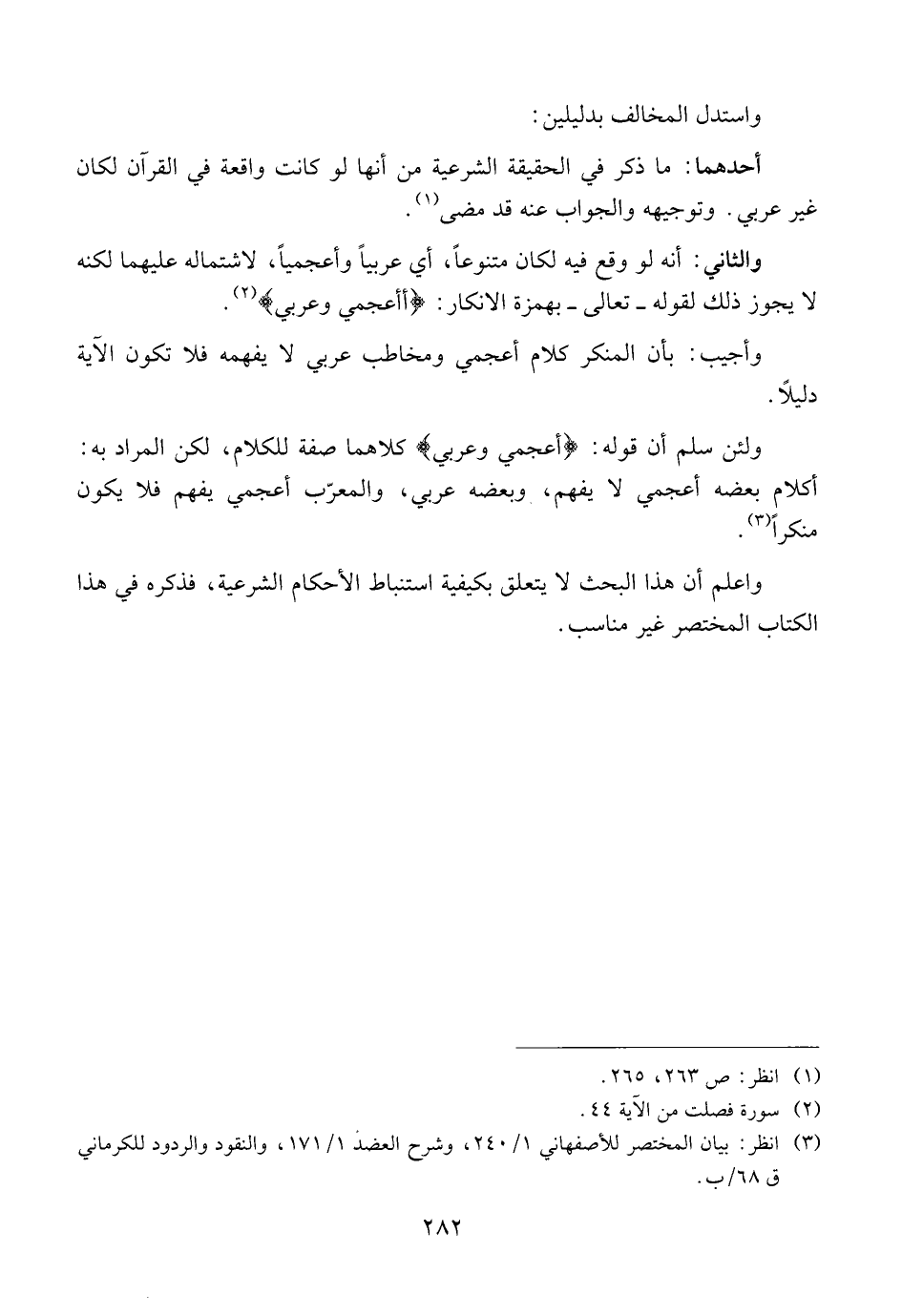واعلم أن هذا البحث لا يتعلق بكيفية استنباط الأحكام الشرعية، فذكره في هذا الكتاب المختصر غير مناسب.