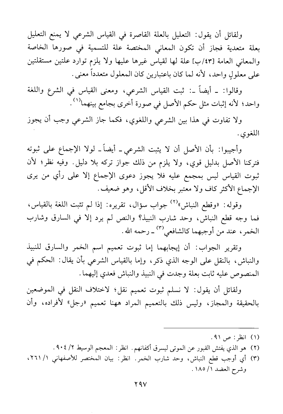 وقوله: {{وقطع النباش}} جواب سؤال، تقريره: إذا لم تثبت اللغة بالقياس، فما وجه قطع النباش، وحد شارب النبيذ؟ والنص لم يرد إلا في السارق وشارب الخمر، عند من أوجبهما كالشافعي ــ رحمه الله.