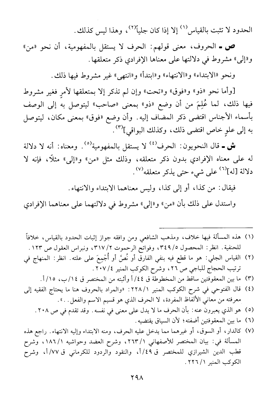 ص ــ الحروف، معنى قولهم: الحرف لا يستقل بالمفهومية، أن نحو {{من}} و {{إلى}} مشروط في دلالتها على معناها الإفرادي ذكر متعلقها.