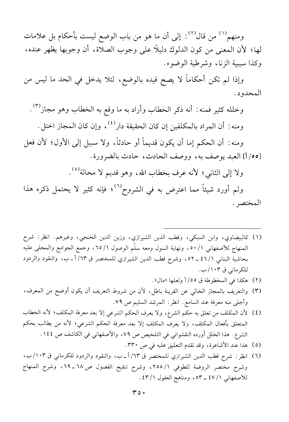 ومنهم من قال: إلى أن ما هو من باب الوضع ليست بأحكام بل علامات لها؛ لأن المعنى من كون الدلوك دليلاً على وجوب الصلاة، أن وجوبها يظهر عنده، وكذا سببية الزنا، وشرطية الوضوء.