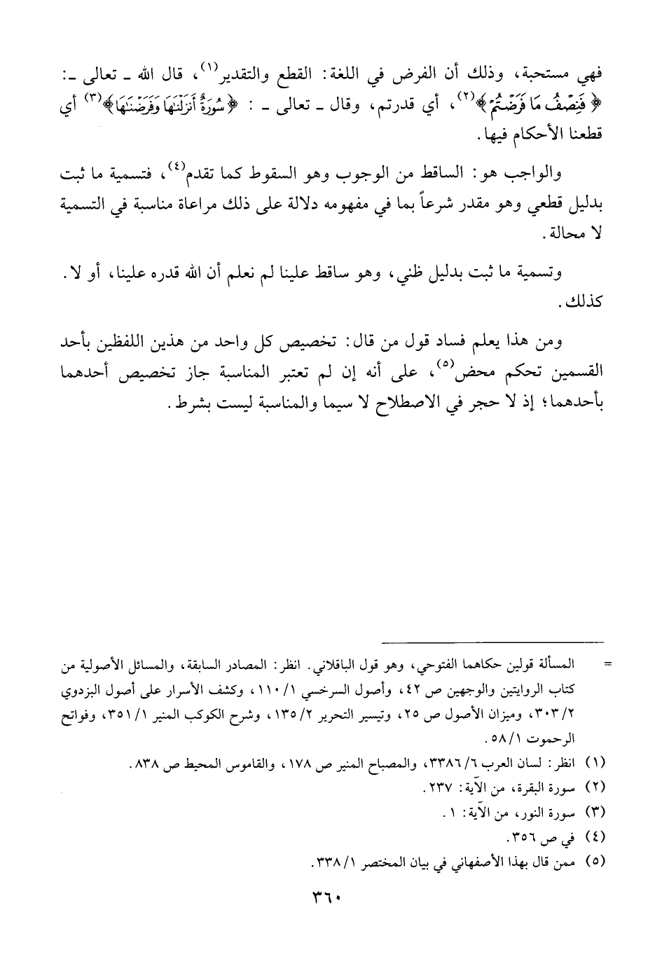 والواجب هو: الساقط من الوجوب وهو السقوط كما تقدم، فتسمية ما ثبت بدليل قطعي وهو مقدر شرعاً بما في مفهومه دلالة على ذلك مراعاة مناسبة في التسمية لا محالة.