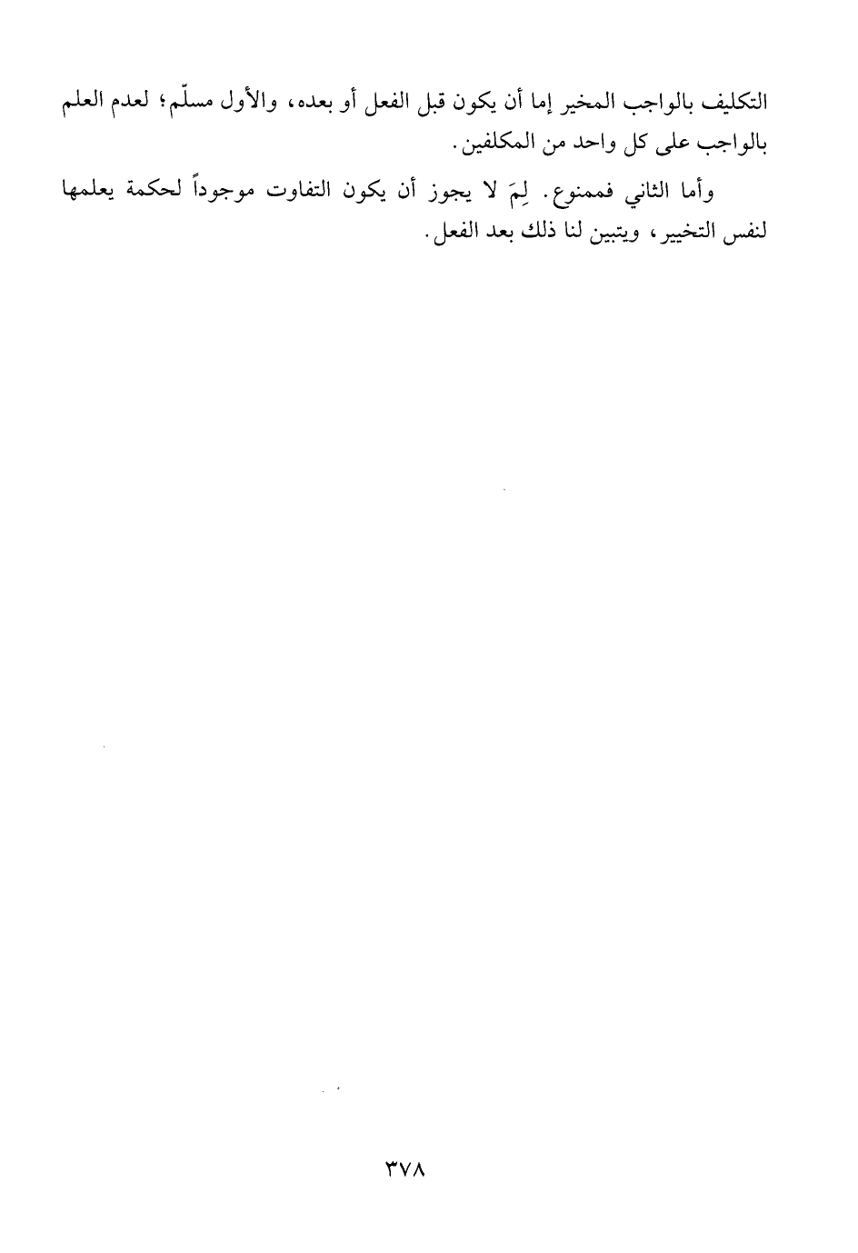 التكليف بالواجب المخير إما أن يكون قبل الفعل أو بعده، والأول مسلّم؛ لعدم العلم بالواجب على كل واحد من المكلفين.