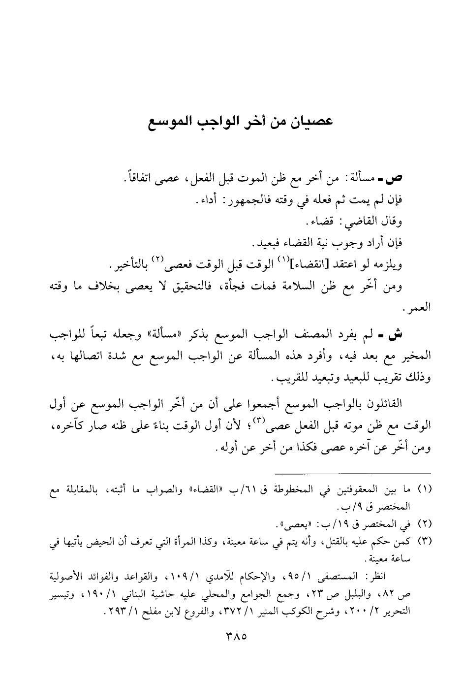 ص ــ مسألة: من أخر مع ظن الموت قبل الفعل، عصى اتفاقاً.