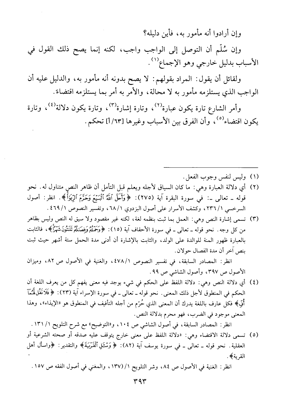 وأمر الشارع تارة يكون عبارة، وتارة إشارة، وتارة يكون دلالة، وتارة يكون اقتضاء، وأن الفرق بين الأسباب وغيرها [٦٣/أ] تحكم.