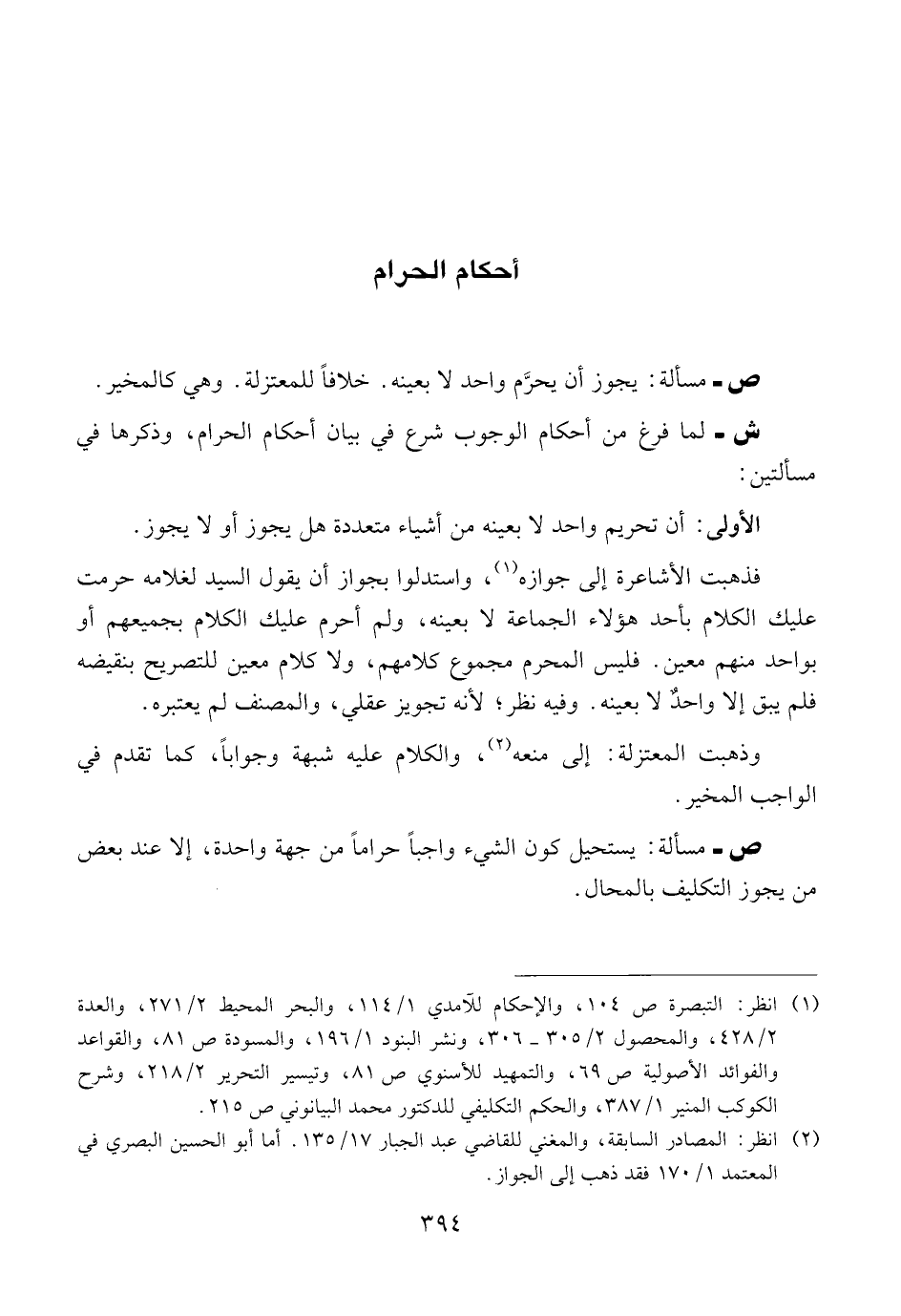 ص ــ مسألة: يجوز أن يحرَّم واحد لا بعينه. خلافاً للمعتزلة. وهي كالمخير.