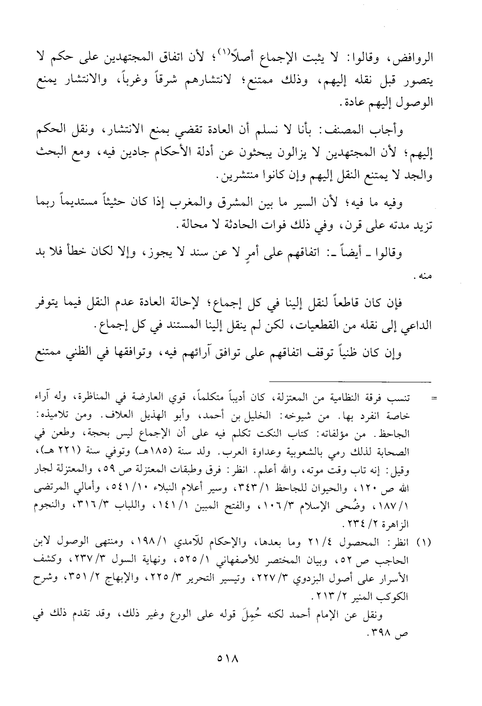الروافض، وقالوا: لا يثبت الإجماع أصلاً؛ لأن اتفاق المجتهدين على حكم لا يتصور قبل نقله إليهم، وذلك ممتنع؛ لانتشارهم شرقاً وغرباً، والانتشار يمنع الوصول إليهم عادة.
