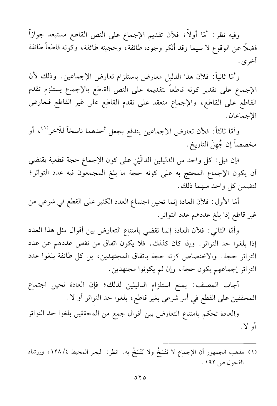 وفيه نظر: أمّا أولاً؛ فلأن تقديم الإجماع على النص القاطع مستبعد جوازاً فضلاً عن الوقوع لا سيما وقد أنكر وجوده طائفة، وحجيته طائفة، وكونه قاطعاً طائفة أخرى.