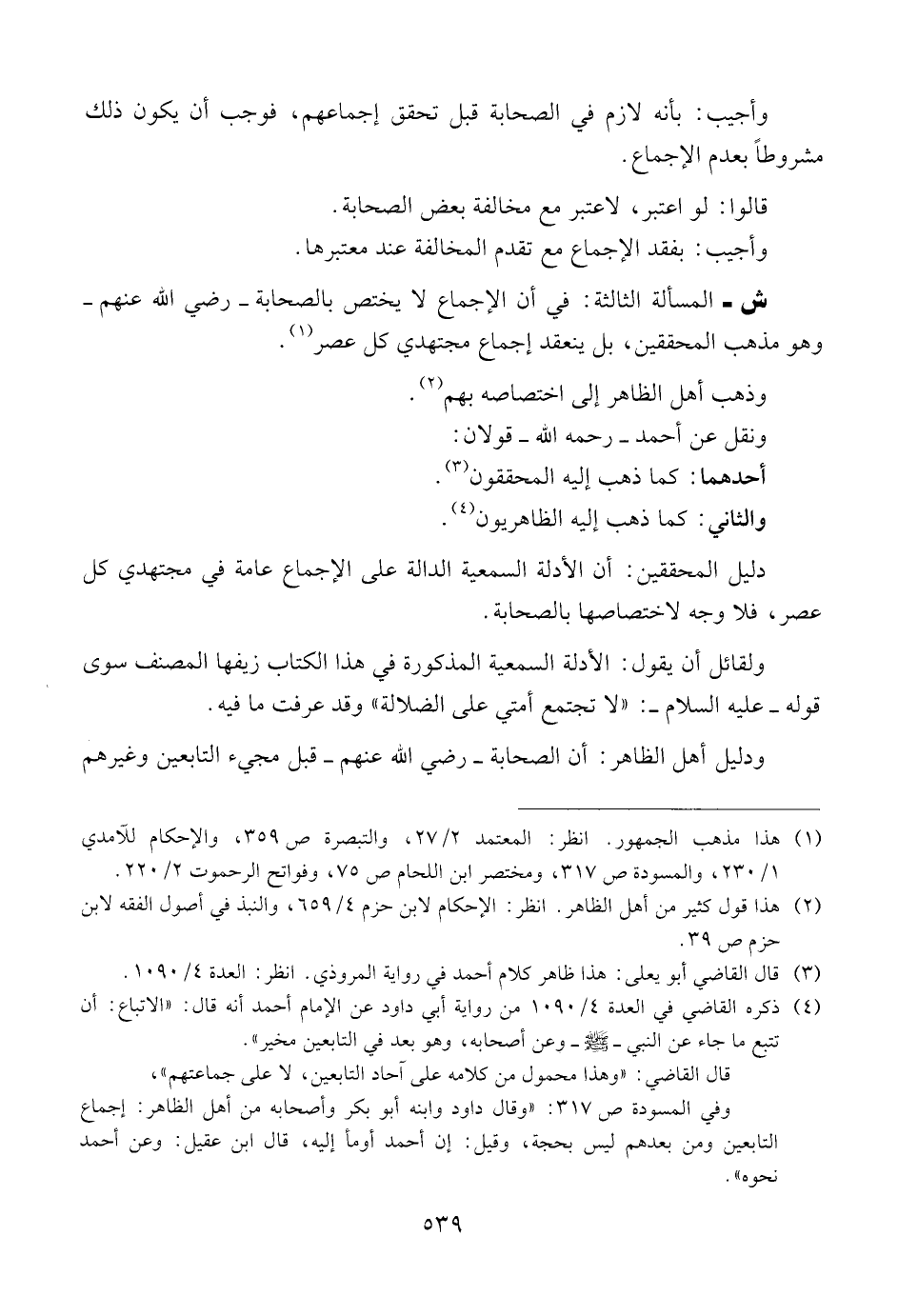 ش ــ المسألة الثالثة: في أن الإجماع لا يختص بالصحابة ــ رضي الله عنهم ــ وهو مذهب المحققين، بل ينعقد إجماع مجتهدي كل عصر.