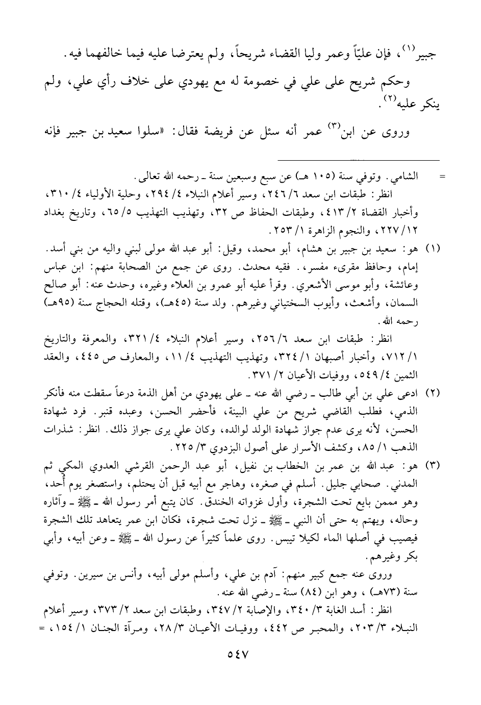 وروى عن ابن عمر أنه سئل عن فريضة فقال: {{سلوا سعيد بن جبير فإنه