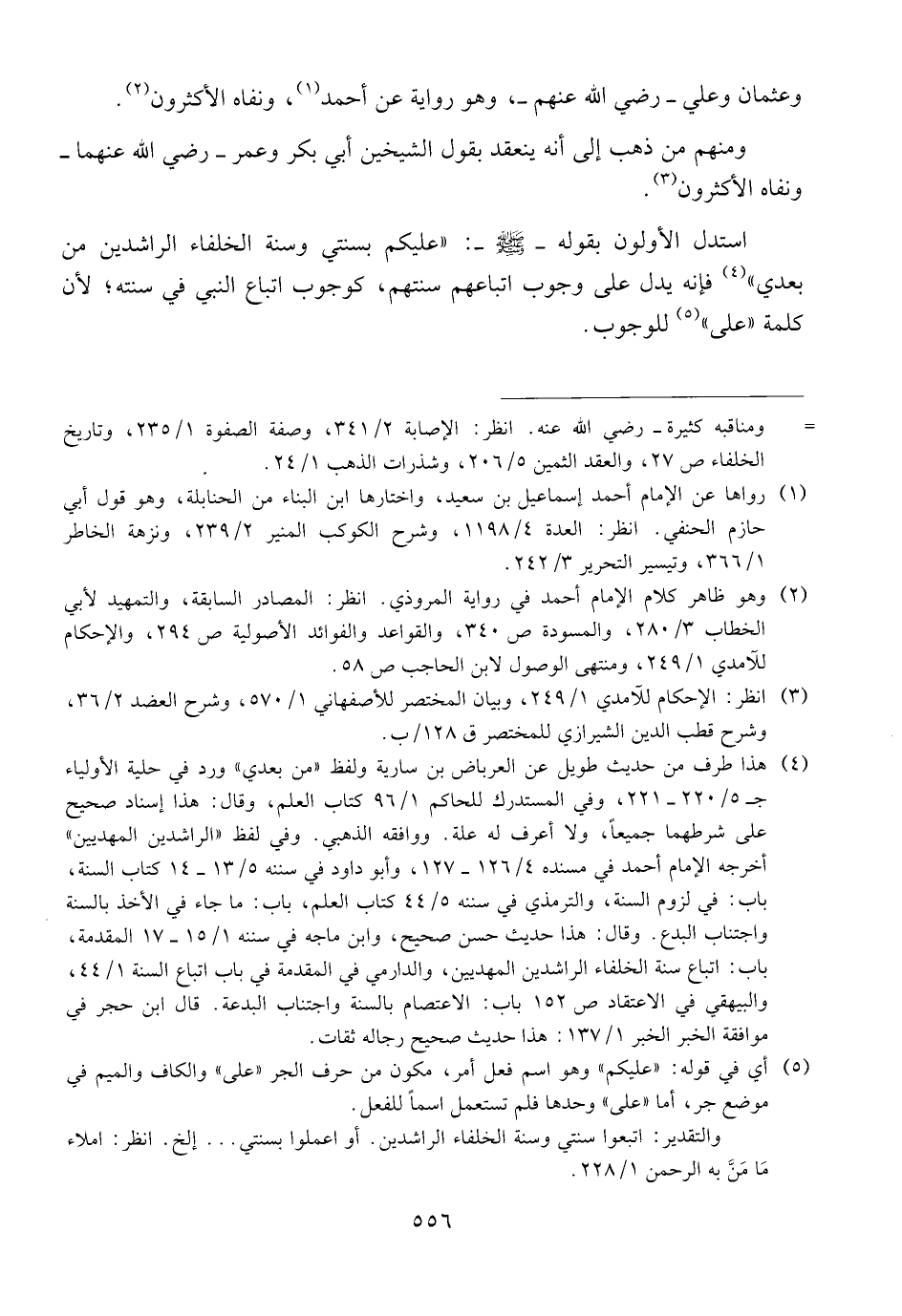استدل الأولون بقوله ــ صلى الله عليه وسلم ــ: {{عليكم بسنتي وسنة الخلفاء الراشدين من بعدي}} فإنه يدل على وجوب اتباعهم سنتهم، كوجوب اتباع النبي في سنته؛ لأن كلمة {{على}} للوجوب.