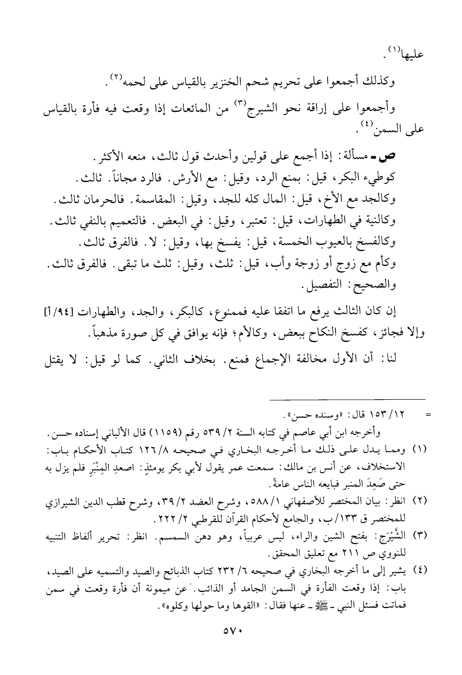 ص ــ مسألة: إذا أجمع على قولين وأحدث قول ثالث، منعه الأكثر.