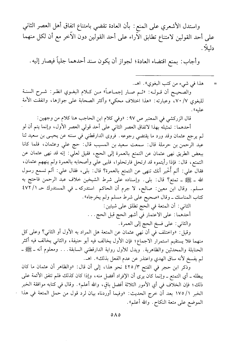 واستدل الأشعري على المنع: بأن العادة تقضي بامتناع اتفاق أهل العصر الثاني على أحد القولين لامتناع تطابق الآراء على أحد القولين دون الآخر مع أن لكل منهما دليلاً.