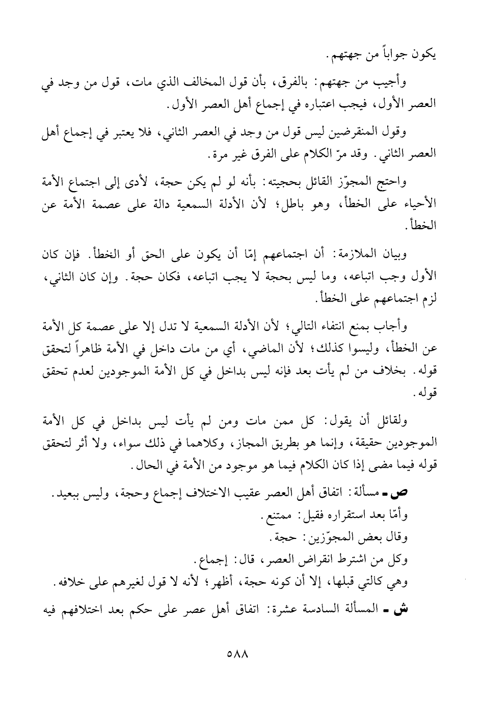 ص ــ مسألة: اتفاق أهل العصر عقيب الاختلاف إجماع وحجة، وليس ببعيد. وأمّا بعد استقراره فقيل: ممتنع.