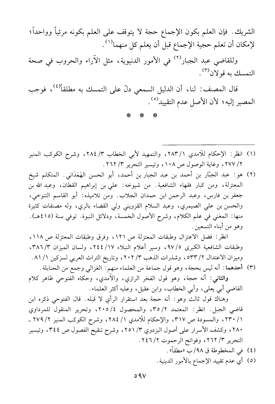 وللقاضي عبد الجبار في الأمور الدنيوية، مثل الآراء والحروب في صحة التمسك به قولان.