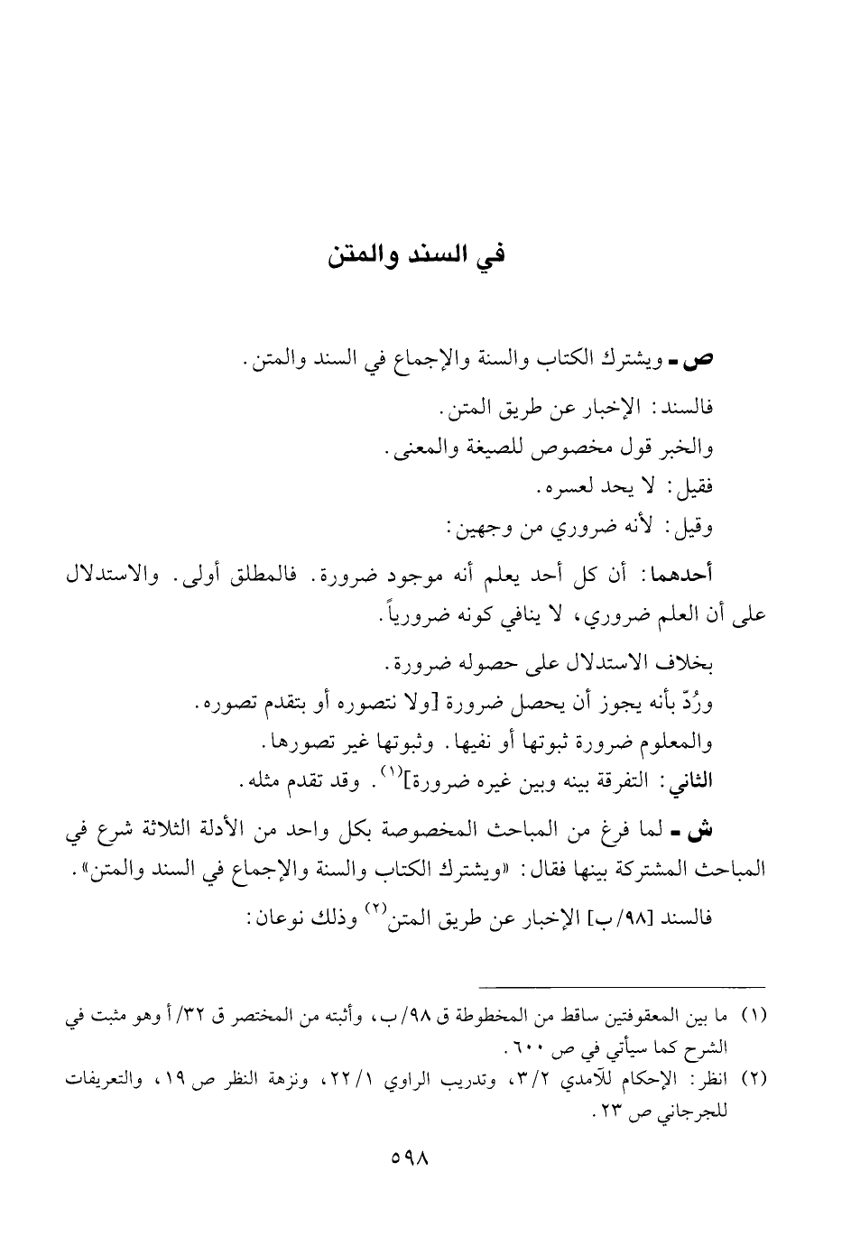 ص ــ ويشترك الكتاب والسنة والإجماع في السند والمتن.