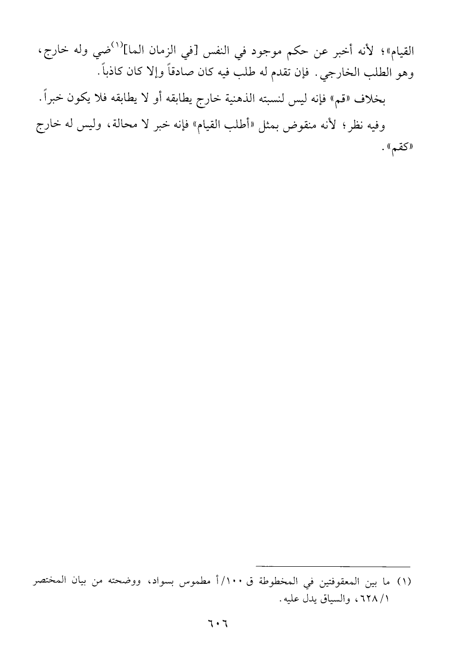بخلاف {{قم}} فإنه ليس لنسبته الذهنية خارج يطابقه أو لا يطابقه فلا يكون خبراً.