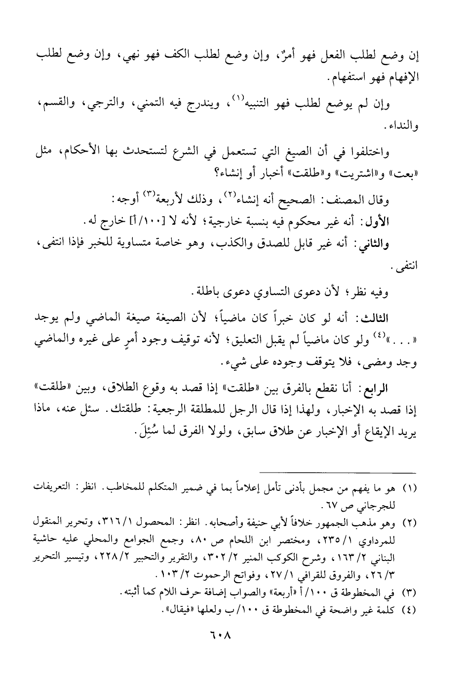 واختلفوا في أن الصيغ التي تستعمل في الشرع لتستحدث بها الأحكام، مثل {{بعت}} و {{اشتريت}} و {{طلقت}} أخبار وإنشاء؟