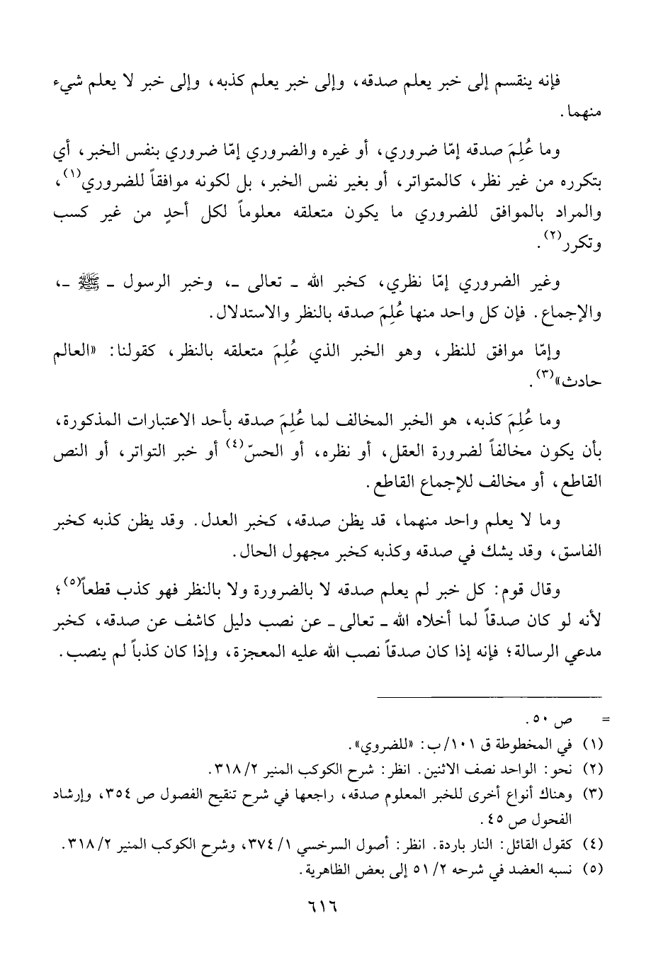 زغير الضروري إمّا نظري، كخبر الله ــ تعالى ــ؛ وخبر الرسول ــ صلى الله عليه وسلم ــ، والإجماع. فإن كل واحد منهما عُلم صدقه بالنظر والاستدلال.