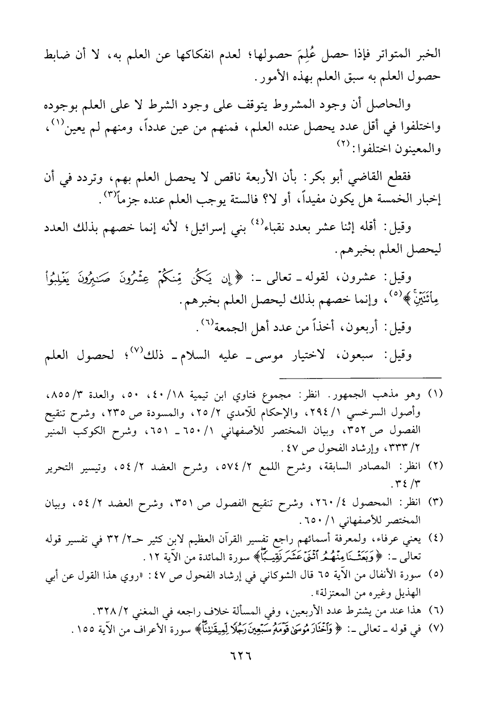 والحاصل أن وجود المشروط يتوقف على وجود الشرط لا على العلم بوجوده واختلفوا في أقل عدد يحصل عنده العلم، فمنهم من عين عدداً، ومنهم لم يعين، والمعينون اختلفوا: