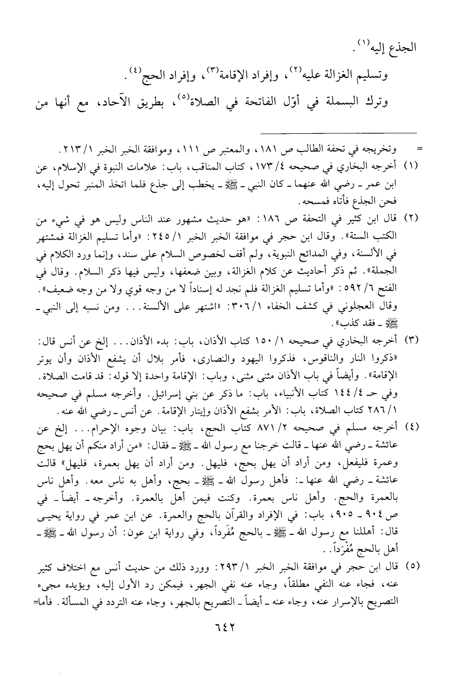 وتسليم الغزالة عليه، وإفراد الإقامة، وإفراد الحج.