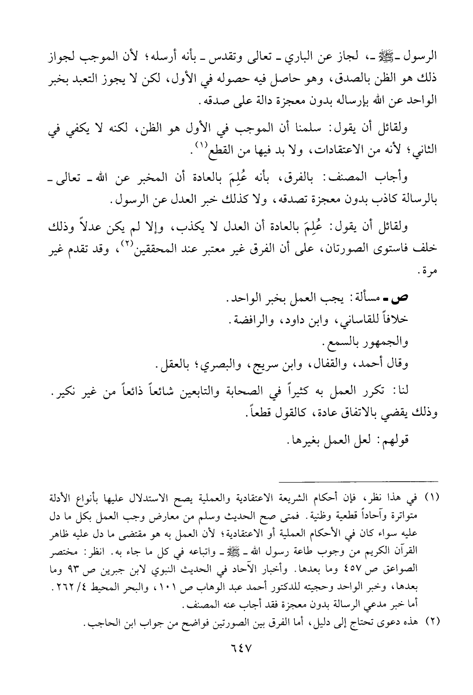 ص ــ مسألة: يجب العمل بخبر الواحد.