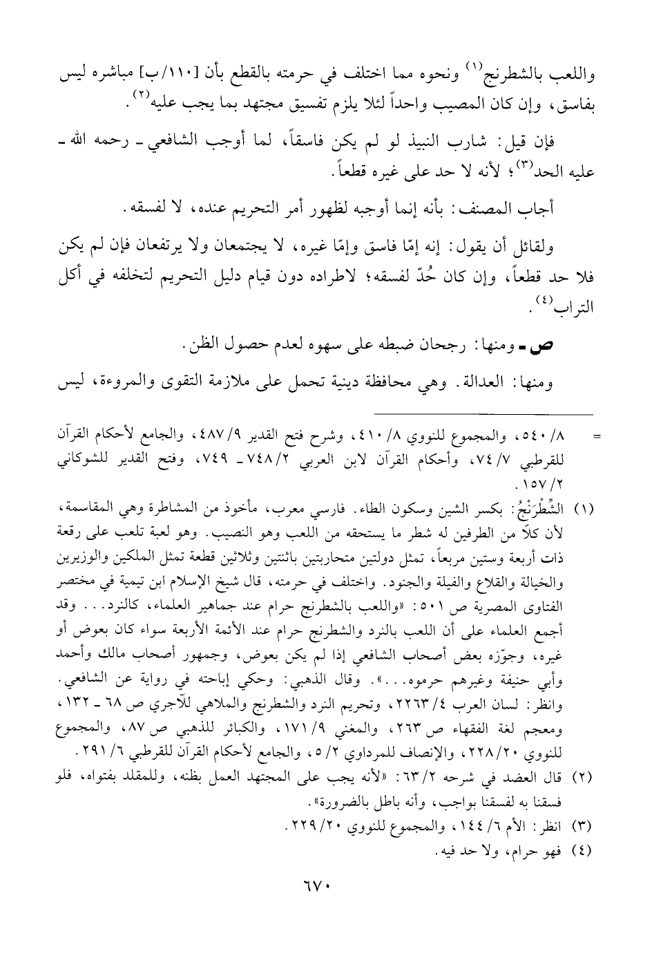 واللعب بالشطرنج ونحوه مما اختلف في حرمته بالقطع بأن [١١٠/ب] مباشره ليس بفاسق، وإن كان المصيب واحداً لئلا يلزم تفسيق مجتهد بما يجب عليه.