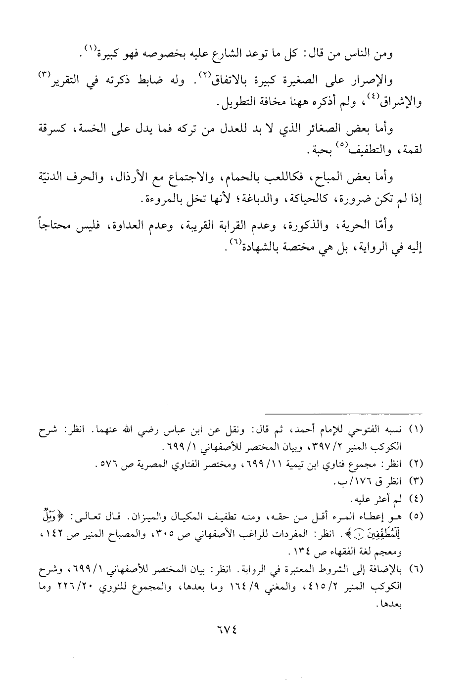والإصرار على الصغيرة كبيرة بالاتفاق. وله ضابط ذكرته في التقرير والإشراق، ولم أذكره ههنا مخافة التطويل.