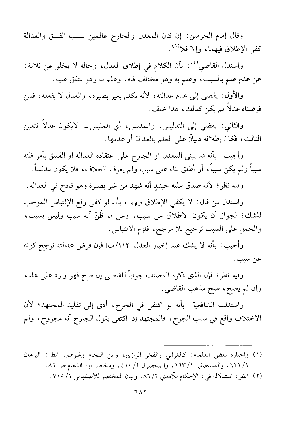 واستد القاضي: بأن الكلام في إطلاق العدل، وحاله لا يخلو عن ثلاثة: عن عدم علم بالسبب، وعلم به وهو مختلف فيه، وعلم به وهو متفق عليه.