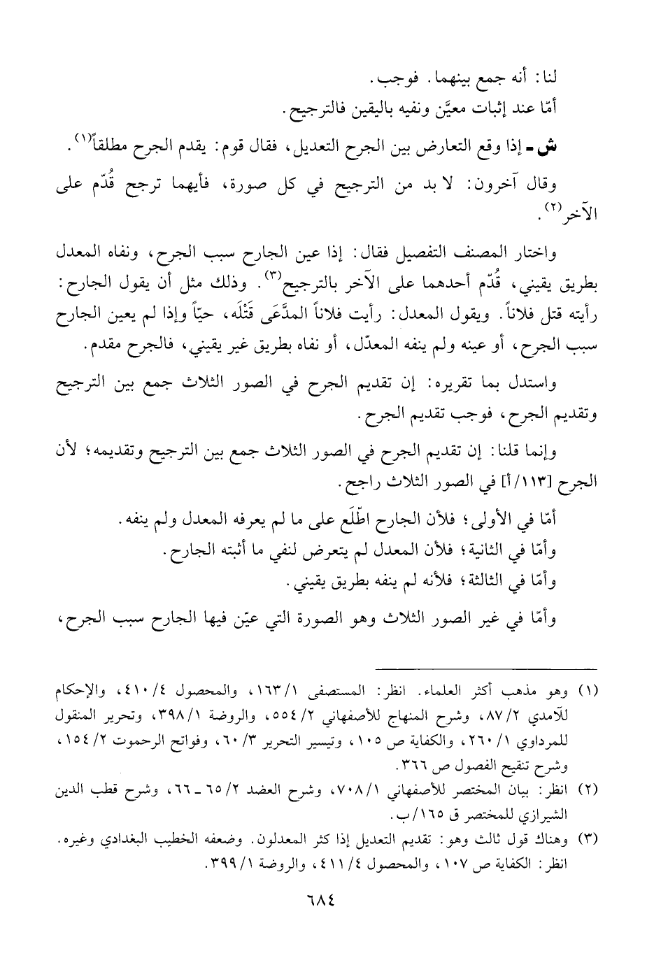 ش ــ إذا وقع التعارض بين الجرح التعديل، فقال قوم: يقدم الجرح مطلقاً.