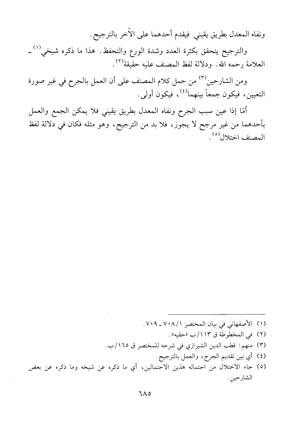 أمّا إذا عين سبب الجرح ونفاه المعدل بطريق يقيني فلا يمكن الجمع والعمل بأحدهما من غير مرجح لا يجوز، فلا بد من الترجيح، وهو مثله فكان في دلالة لفظ المصنف اختلال.