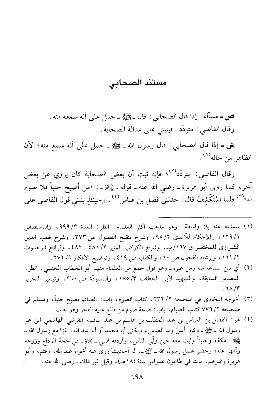 وقال القاضي: متردّد؛ فإنه ثبت أن بعض الصحابة كان يروي عن بعض آخر، كما روى أبو هريرة ــ رضي الله عنه ــ قوله قال ــ صلى الله عليه وسلم ــ: {{من أصبح جنباً فلا صوم له}} فلما اسْتُكْشِفَ قال: حدثني فضل بن عباس. وحينئذٍ ينبني قول القاضي على