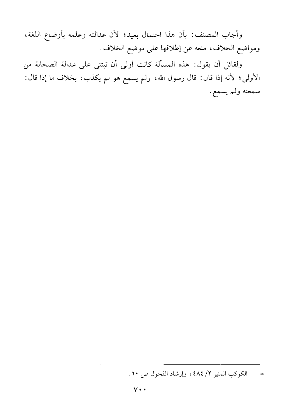 وأجاب المصنف: بأن هذا احتمال بعيد؛ لأن عدالته وعلمه بأوضاع اللغة، ومواضع الخلاف، منعه عن إطلاقها على مواضع الخلاف.