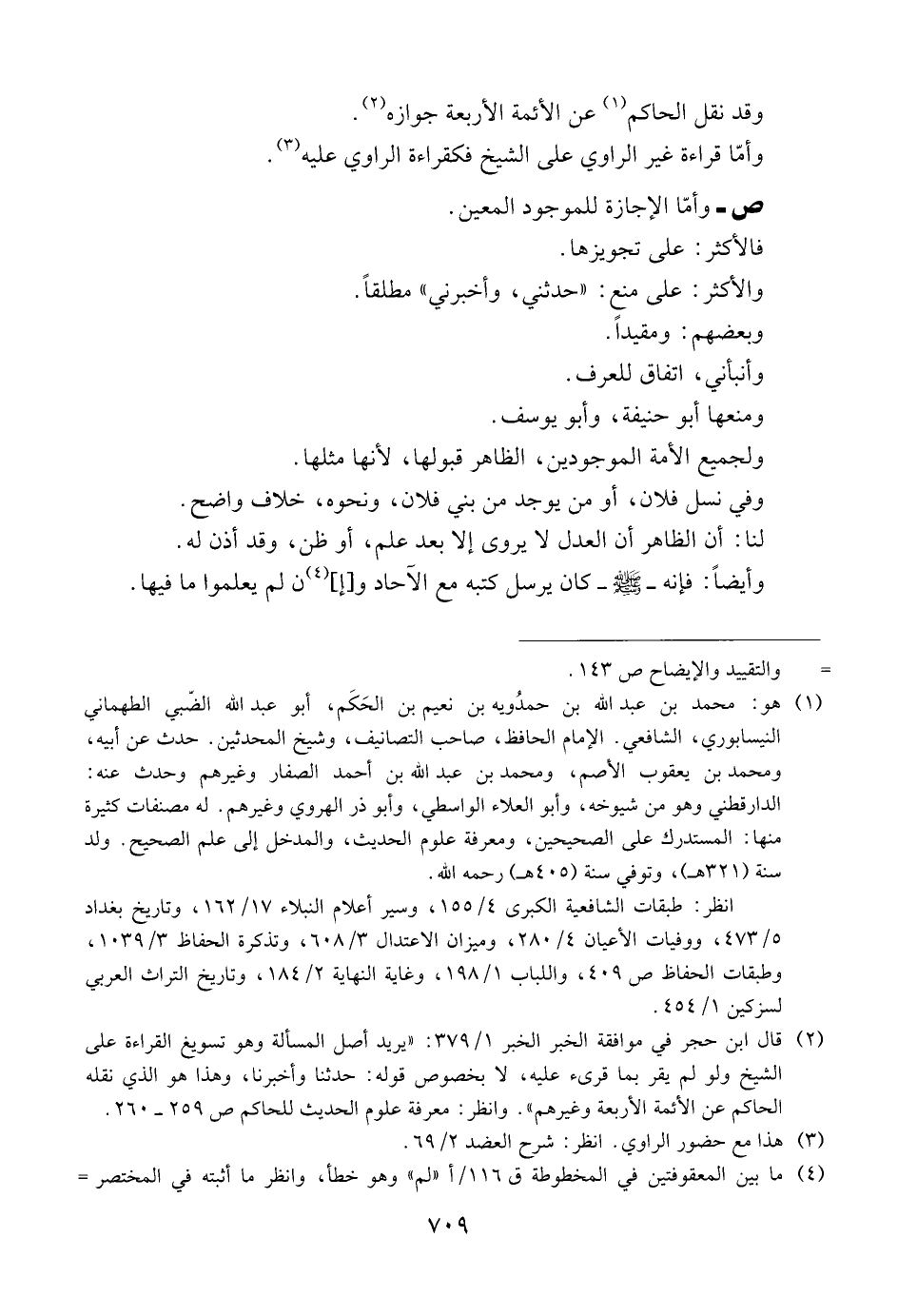 وأيضاً: فإنه ــ صلى الله عليه وسلم ــ كان يرسل كتبه مع الآحاد و [إ] ن لم يعلموا ما فيها.