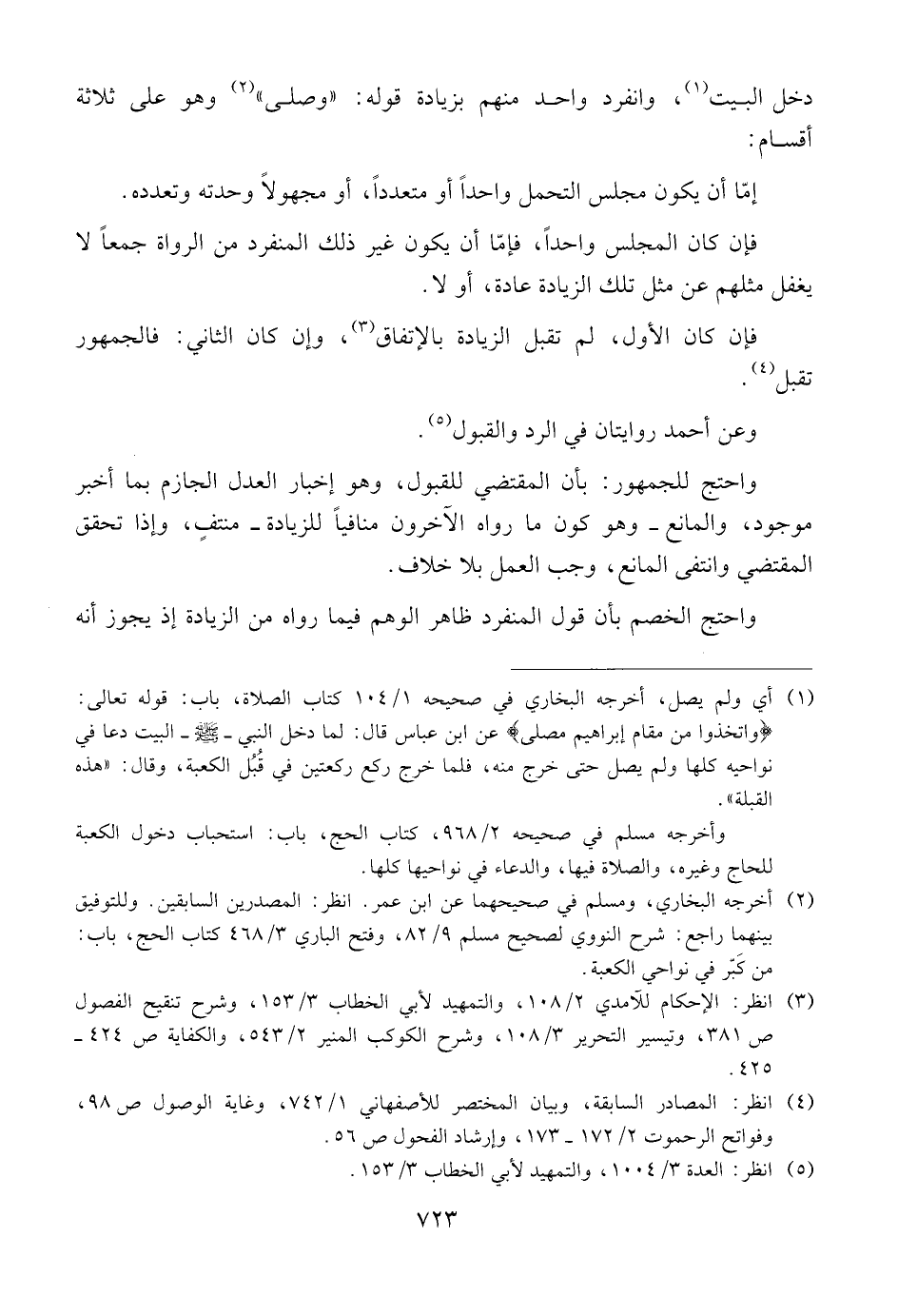 واحتج للجمهور: بأن المقتضي للقبول، وهو إخبار العدل الجازم بما أخبر موجود، والمانع ــ وهو كون ما رواه الآخرون منافياً للزيادة ــ منتفٍ، وإذا تحقق المقتضي وانتفى المانع، وجب العمل بلا خلاف.