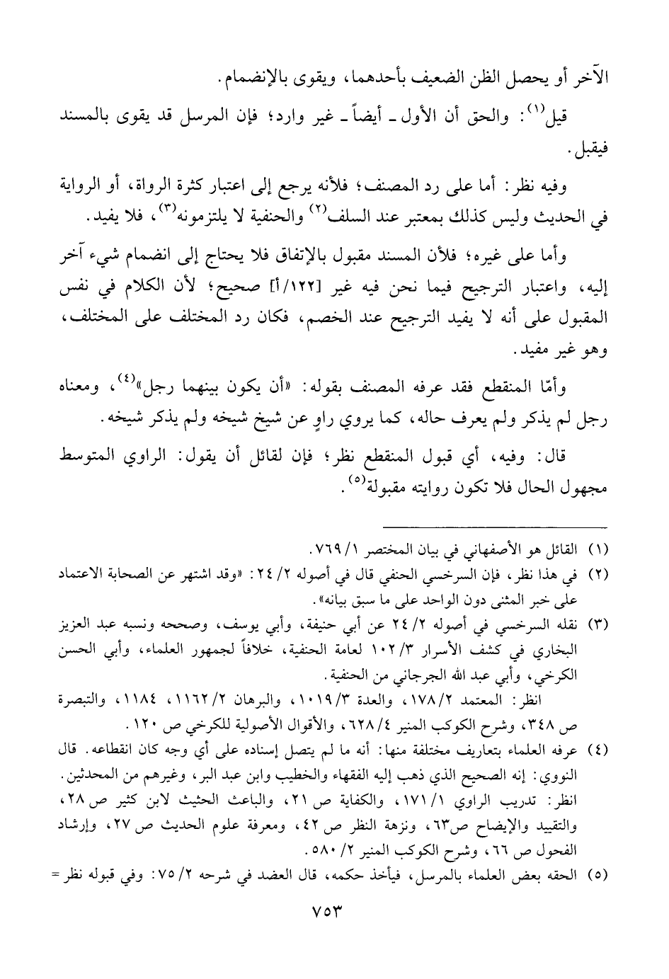 وفيه نظر: أما على رد المصنف؛ فلأنه يرجع إلى اعتبار كثرة الرواة، أو الرواية في الحديث وليس كذلك بمعتبر عند السلف والحنفية لا يلتزمونه، فلا يفيد.