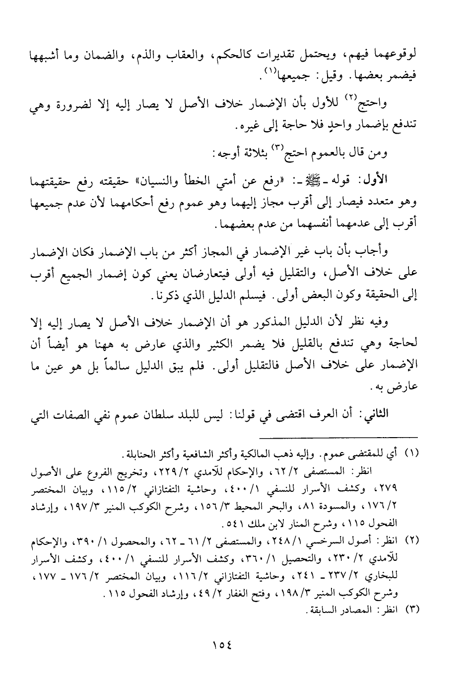 الأول: قوله - صلى الله عليه وسلم -: " رفع عن أمتي الخطأ والنسيان " حقيقته رفع حقيقتهما وهو متعدد فيصار إلى أقرب مجاز إليهما وهو عموم رفع أحكامهما لأن عدم جميعها أقرب إلى عدمهما أنفسهما من عدم بعضهما.