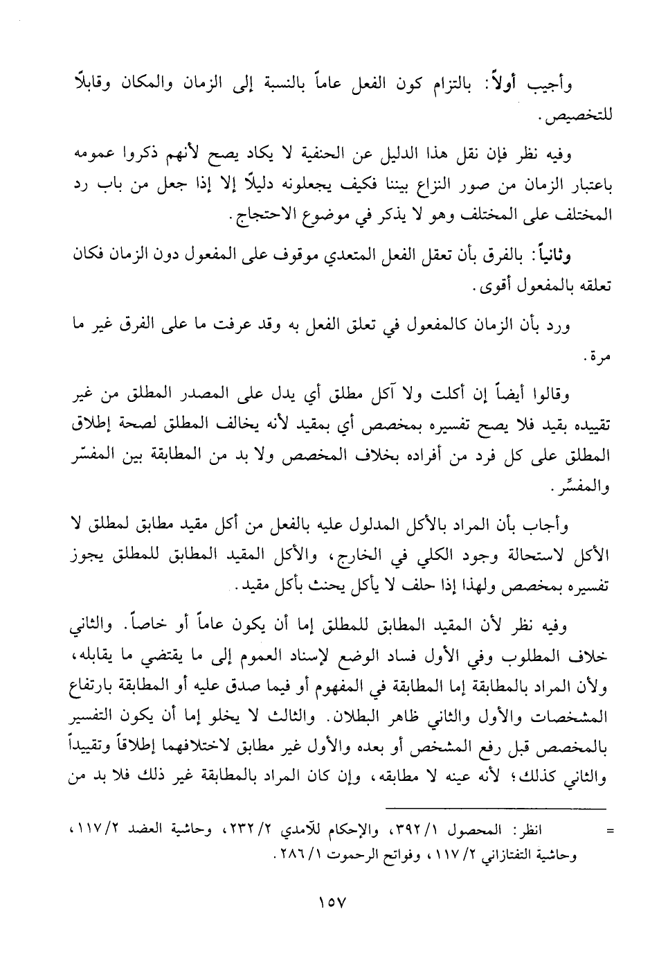 وأجيب أولاً: بالتزام كون الفعل عاما بالنسبة إلى الزمان والمكان وقابلا للتخصيص.