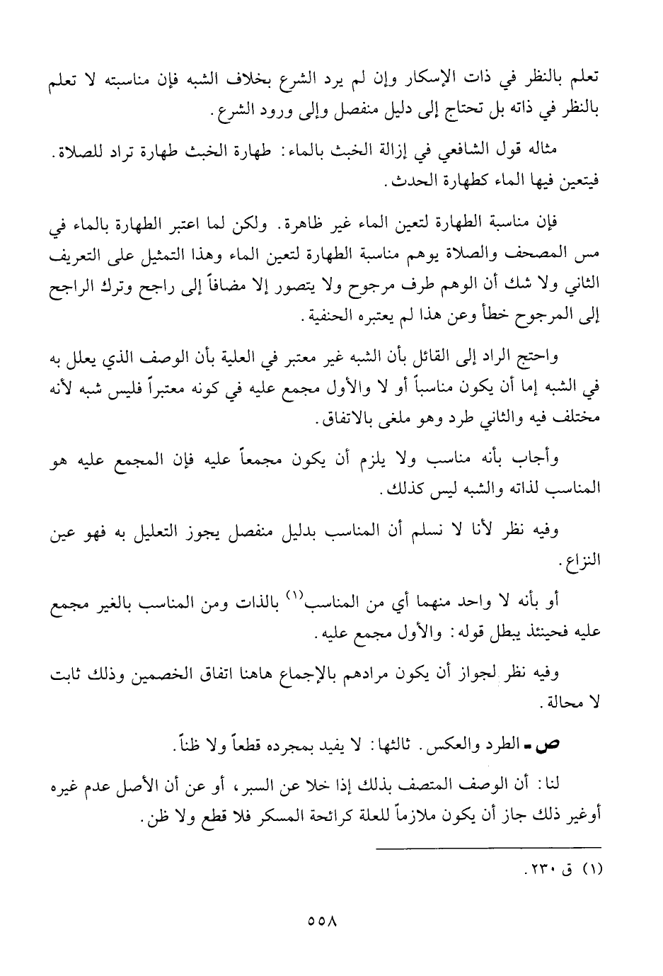 واحتج الراد إلى القائل بأن الشبه غير معتبر في العلية بأن الوصف الذي يعلل به في الشبه إما أن يكون مناسبا أو لا والأول مجمع عليه في كونه معتبرا فليس شبه لأنه مختلف فيه والثاني طرد وهو ملغى بالاتفاق.