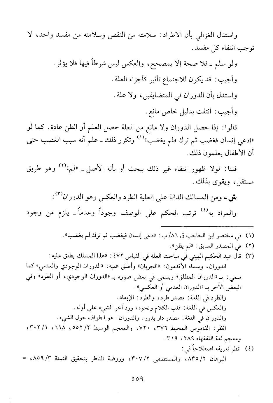 ش - ومن المسالك الدالة على العلية الطرد والعكس وهو الدوران: