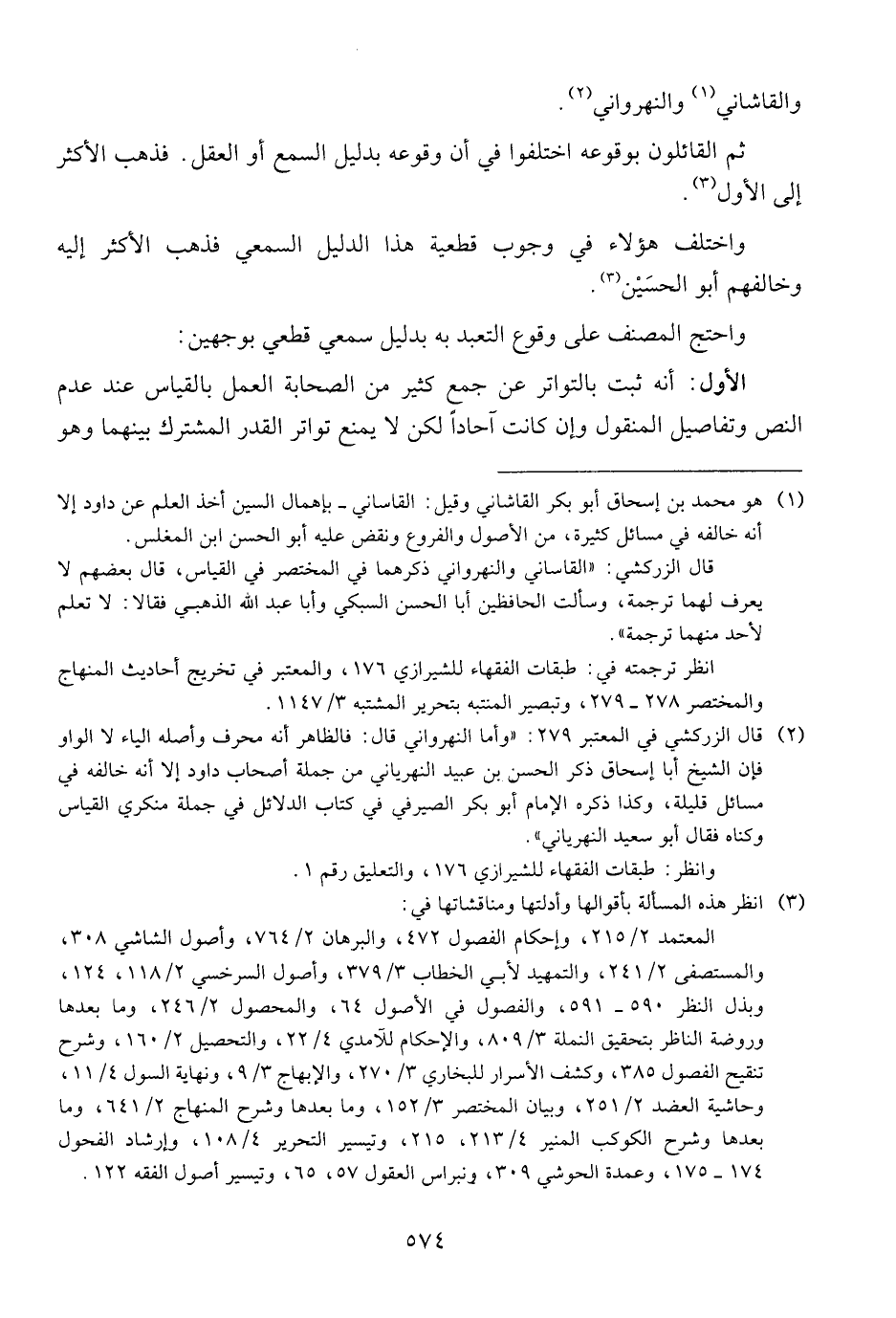 واختلف هؤلاء في وجوب قطعية هذا الدليل السمعي فذهب الأكثر إليه وخالفهم أبو الحسين.