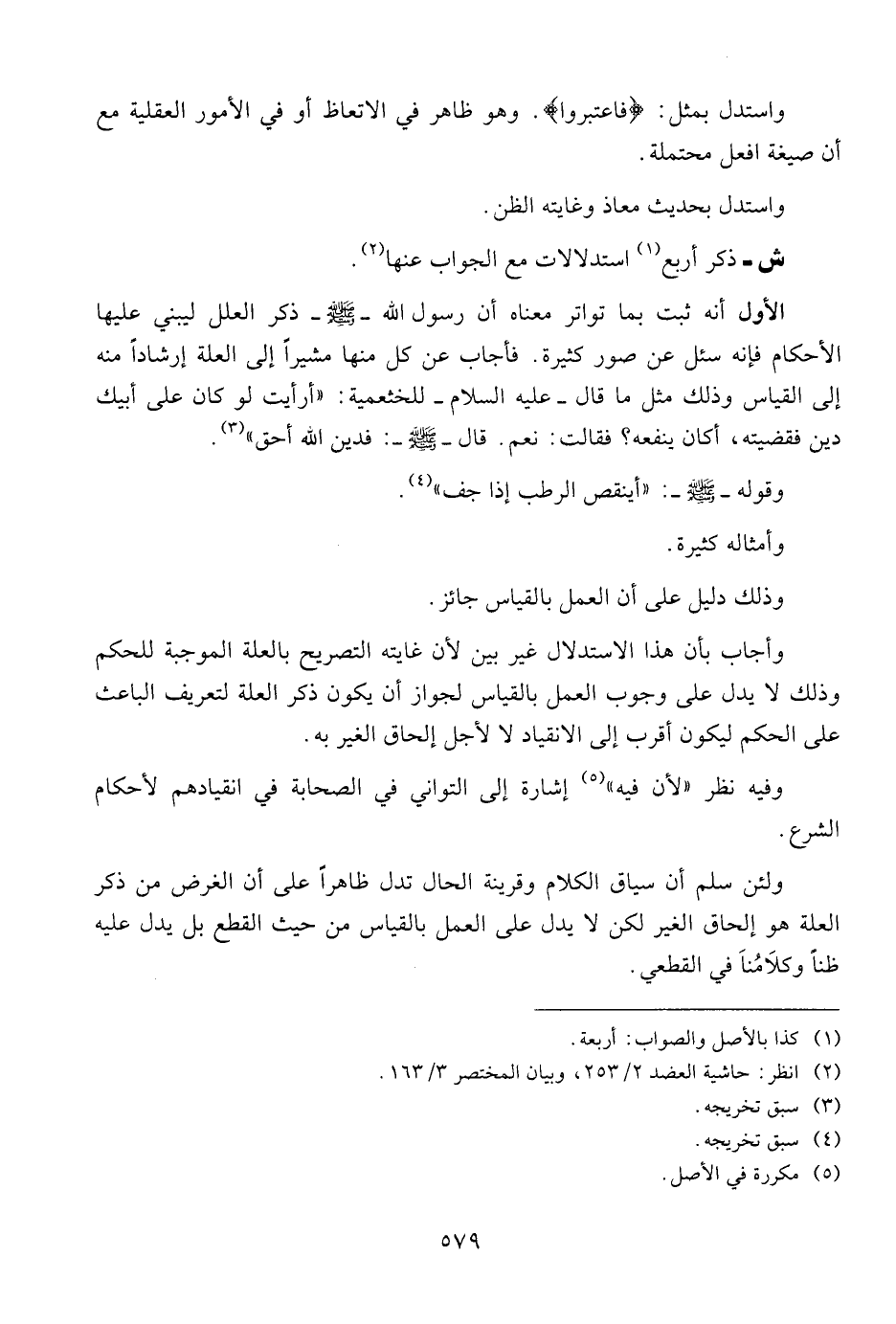 ش - ذكر أربع استدلالات مع الجواب عنها.