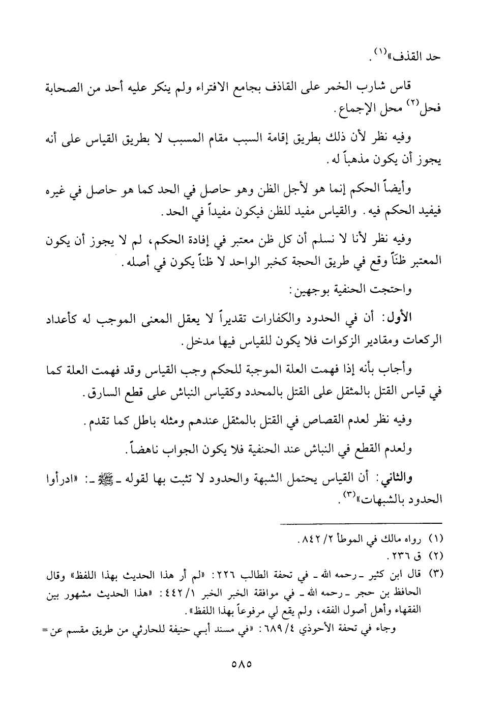 والثاني: أن القياس يحتمل الشبهة والحدود لا تثبت بها لقوله - صلى الله عليه وسلم -: " ادرأوا الحدود بالشبهات ".