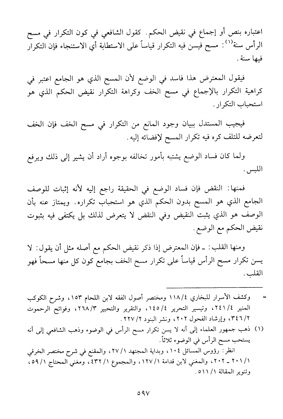 فيقول المعترض هذا فاسد في الوضع لأن المسح الذي هو الجامع اعتبر في كراهية التكرار بالإجماع في مسح الخف وكراهية التكرار نقيض الحكم الذي هو استحباب التكرار.