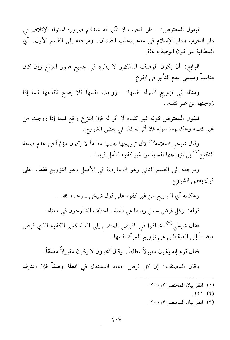 فقال شيخي اختلفوا في الفرض المنضم إلى العلة كغير الكفوء الذي فرض منضما إلى العلة التي هي تزويج المرأة نفسها.