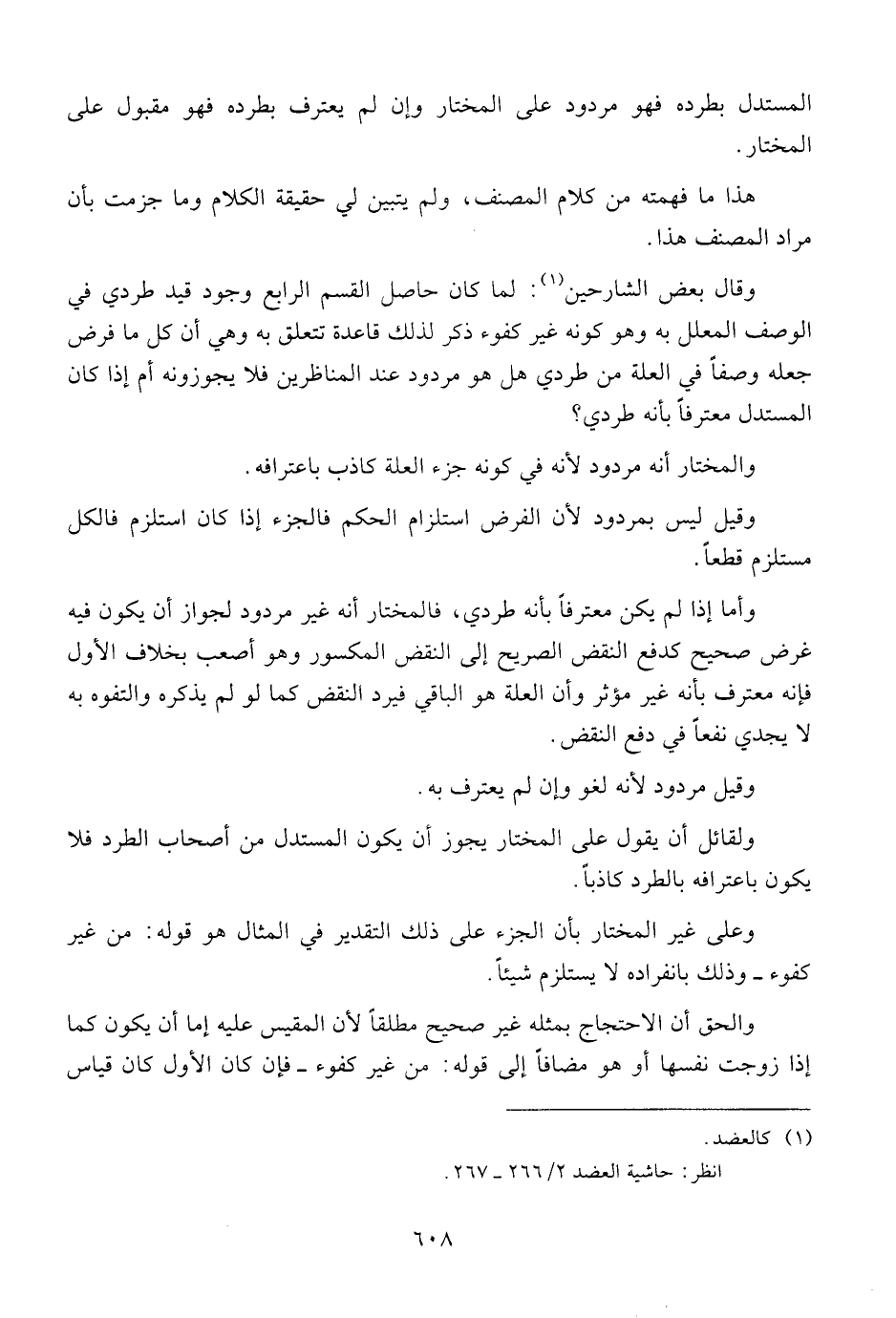 وأما إذا لم يكن معترفا بأنه طردي , فالمختار أنه غير مردود لجواز أن يكون فيه غرض صحيح كدفع النقض الصريح إلى النقض المكسور وهو أصعب بخلاف الأول فإنه معترف بأنه غير مؤثر وأن العلة هو الباقي فيرد النقض كما لو لم يذكره والتفوه به لا يجدي نفعا في دفع النقض.