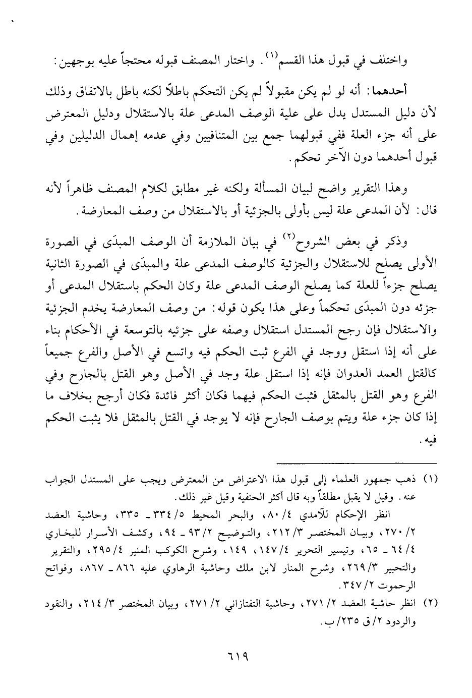 أحدهما: أنه لو لم يكن مقبولا لم يكن التحكم باطلا لكنه باطل بالاتفاق وذلك لأن دليل المستدل يدل على علية الوصف المدعى علة بالاستقلال ودليل المعترض على أنه جزء العلة ففي قبولهما جمع بين المتنافيين وفي عدمه إهمال الدليلين وفي قبول أحدهما دون الآخر تحكم.