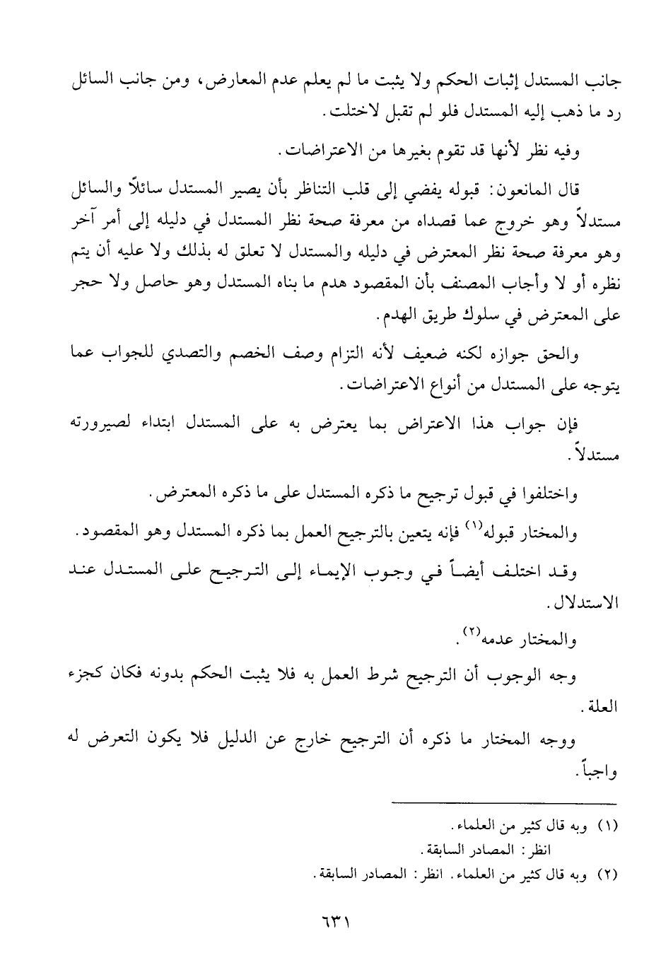 واختلفوا في قبول ترجيح ما ذكره المستدل على ما ذكره المعترض.