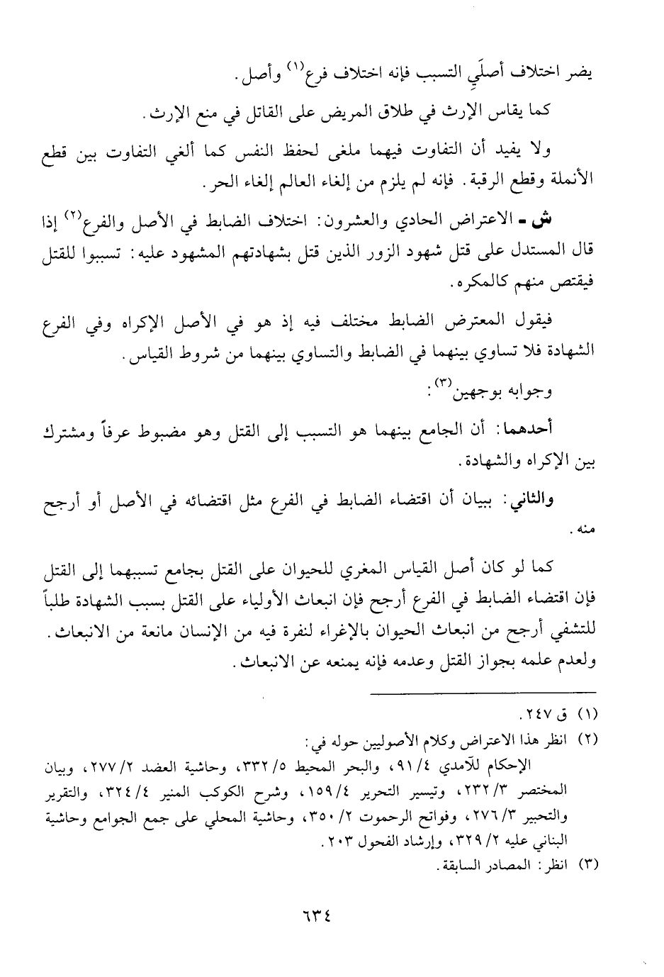 ولا يفيد أن التفاوت فيهما ملغى لحفظ النفس كما ألغي التفاوت بين قطع الأنملة وقطع الرقبة. فإنه لم يلزم من إلغاء العالم إلغاء الحر.