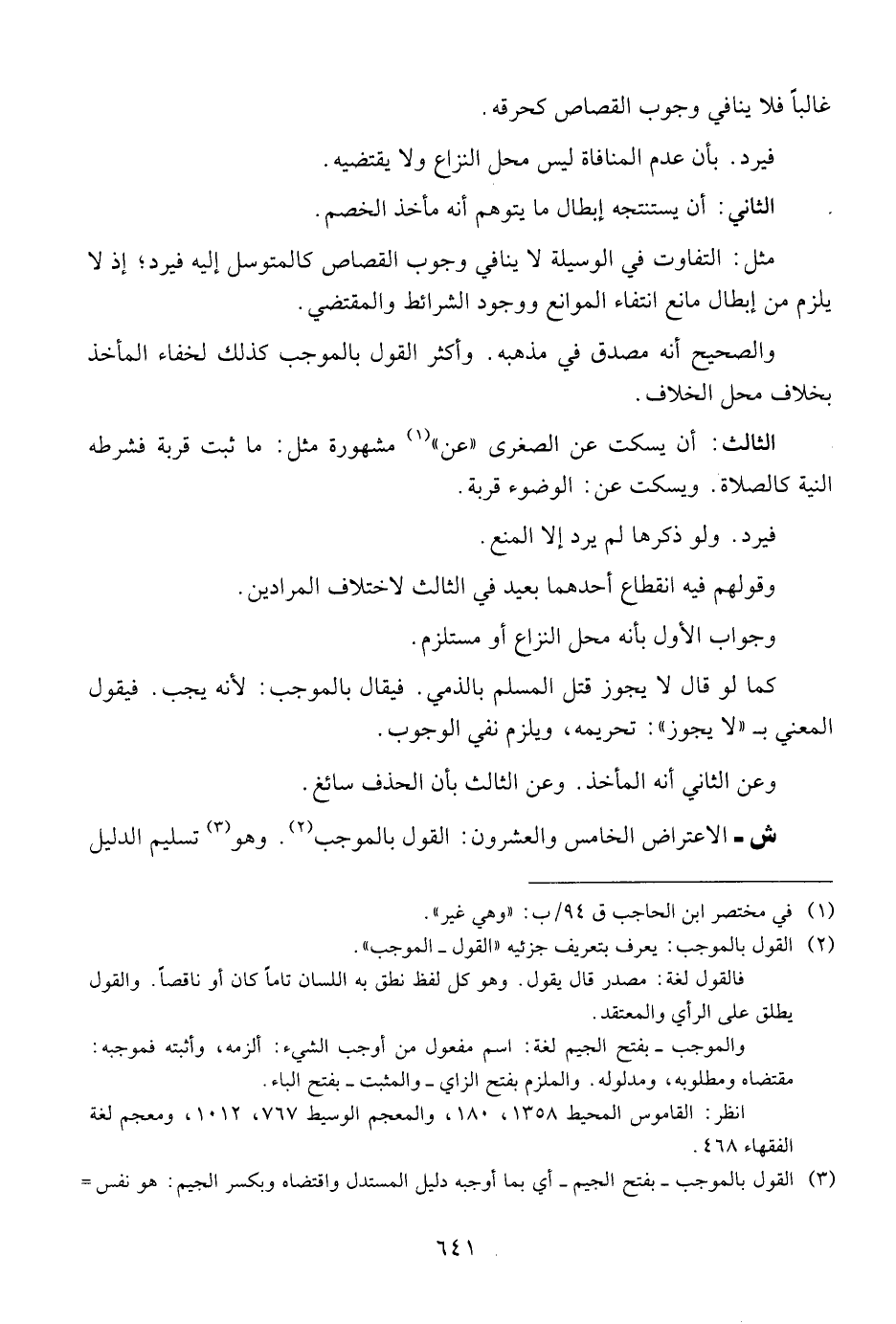 ش - الاعتراض الخامس والعشرون: القول بالموجب. وهو تسليم الدليل